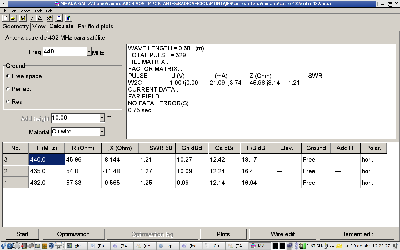 Definición de la antena en formato