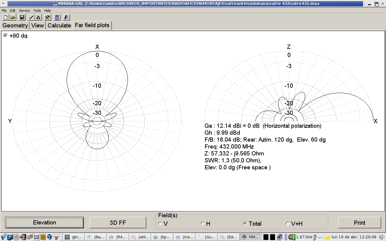 Antena: Yagi 9 elementos para 432 MHz en boom de madera de 1 m de