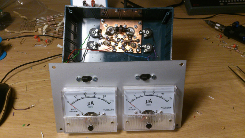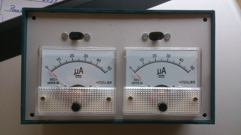 I got several cheap 50 uA panel meters on Ebay. 4 € each…. not too bad!