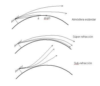Se produce cuando nuestra señal, en lugar de seguir una trayectoria rectilínea, se curva hacia la tierra por efecto de la refracción. La variación del índice de refracción es la que produce dicha curvatura al igual que un rayo de luz cambia su dirección al pasar del aire al agua o viceversa. En condiciones normales, el índice de refracción de la troposfera disminuye a medida que aumenta la altura. En realidad, la atmósfera puede presentar variaciones del índice de refracción con respecto a la altura (img /dh) desde: